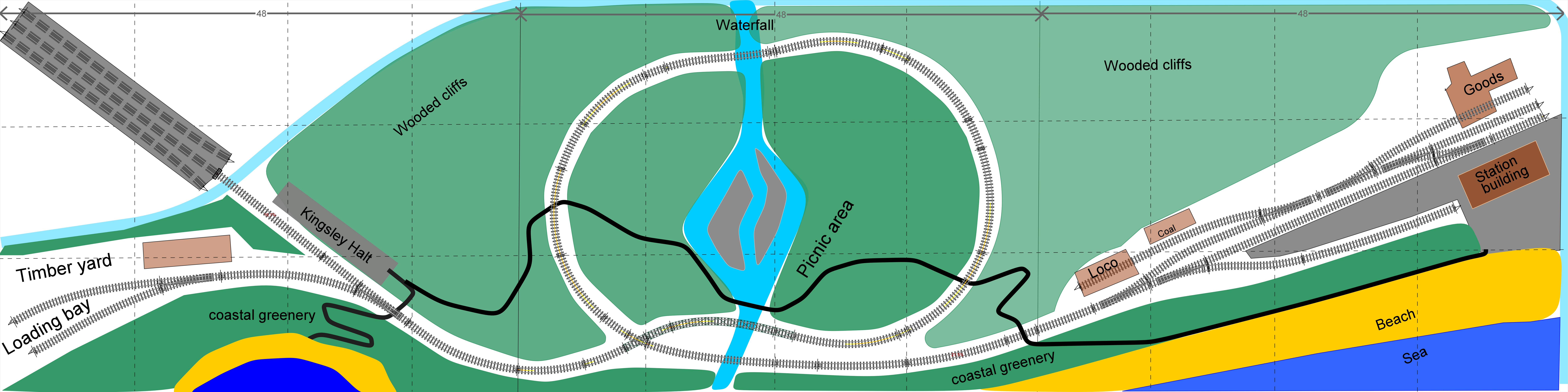 Broadwater Junction is a romantic fictional location. It represents a main line running close to the sea somewhere in the Western Region, probably in Wales. It is analogue control and is usually up and running in the clubroom for members to run their trains.