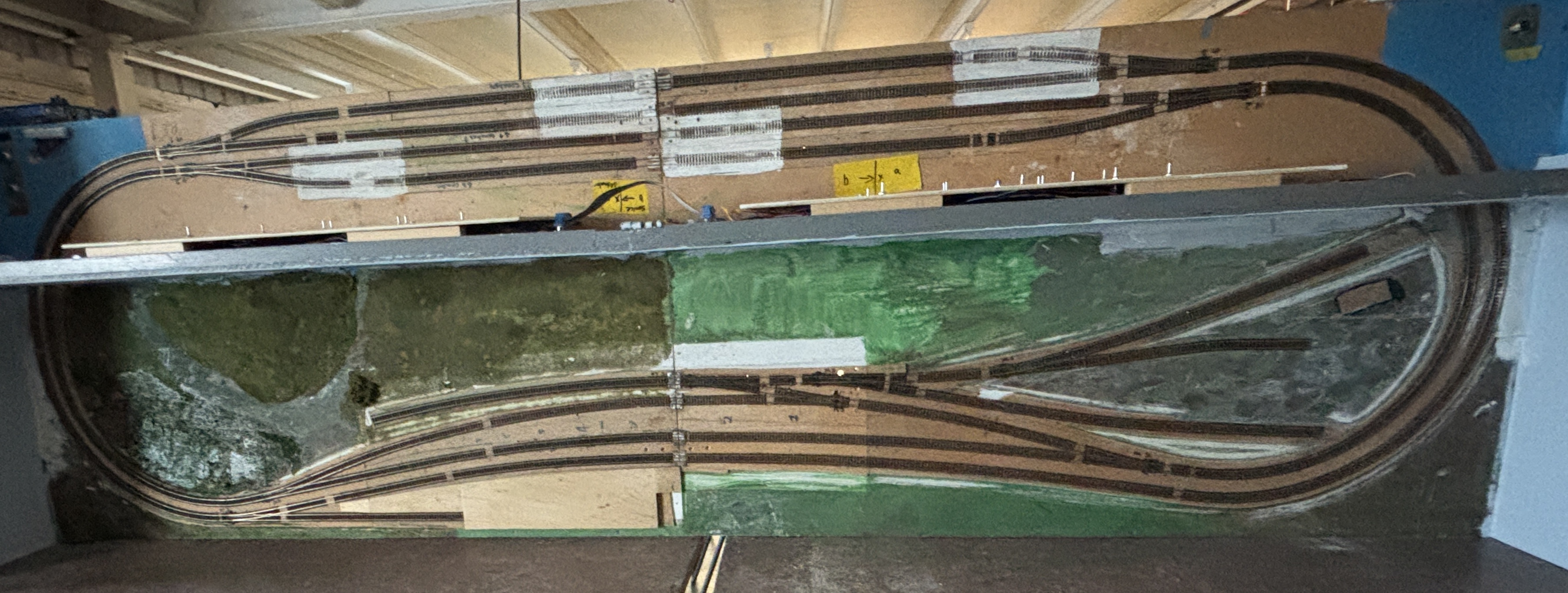 This is a smaller, easily transportable N gauge layout that is still under construction. Here is a rather unusual overhead view of the layout.